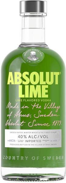 Termék leírás: Absolut Lime - Természetes Lime ízesítésű vodka - alk. 40% Összetevők: víz, svéd vodka (gabonapárlat), természetes ízesítő. Allergének: Allergének az összetvők között nagybetűvel jelennek meg! Egyéb allergén információk : Származási ország: Svédország Átlagos tápérték 100 g termékben: