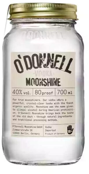 Az O’Donnell Moonshine Vodka egy prémium, organikus alapanyagokból készült 40%-os, tripla desztillált vodkaforradalom – sima, tiszta ízvilággal. Ideális választás koktélokhoz, long drinkekhez vagy önmagában élvezetes kortyolásra.